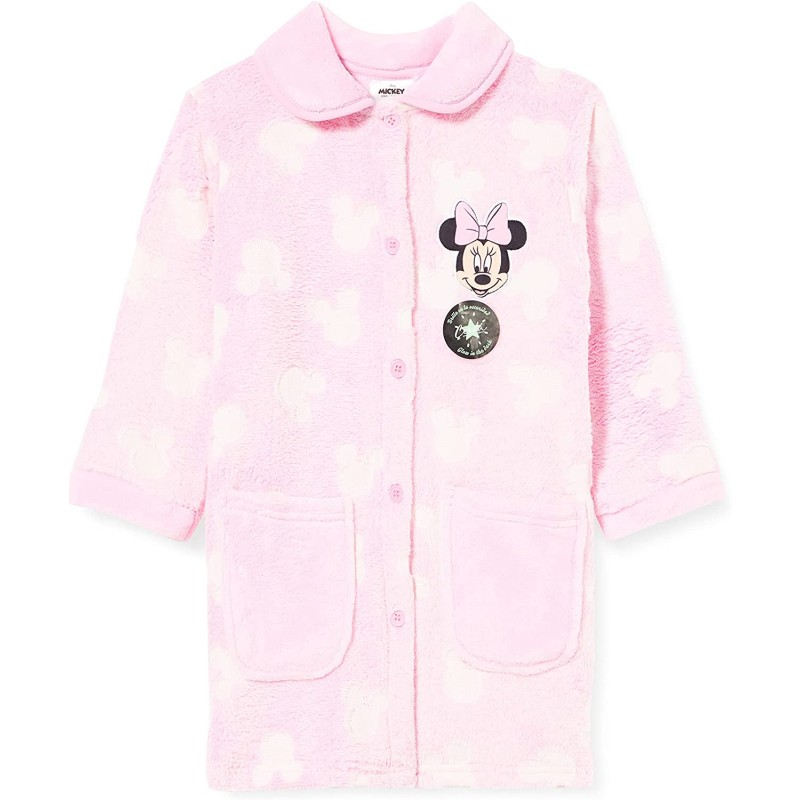 Robe de menina cor de rosa da Minnie Mouse que brilha no escuro, com botões e gola no pescoço, oficialmente licenciado pela Disney.