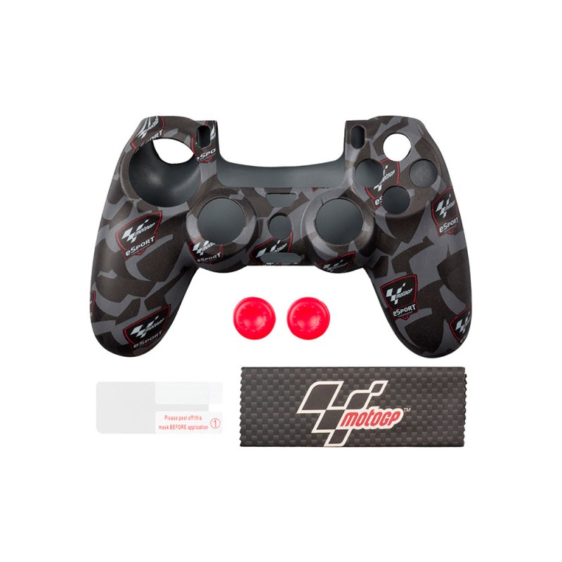 Proteção de silicone Moto GP para comando PS4 – 2 grips – Proteção para painel tátil – Pano para limpeza